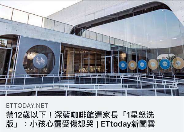 一家知名咖啡店拒絕了一位攜帶8歲女童用餐的客人,因為店內陳設了許多昂貴的玻璃器皿,店家對外説法為店內稜角多怕小孩會受傷;然而消費者並不買單,在該店粉絲專頁上硬是給了一顆星評價。