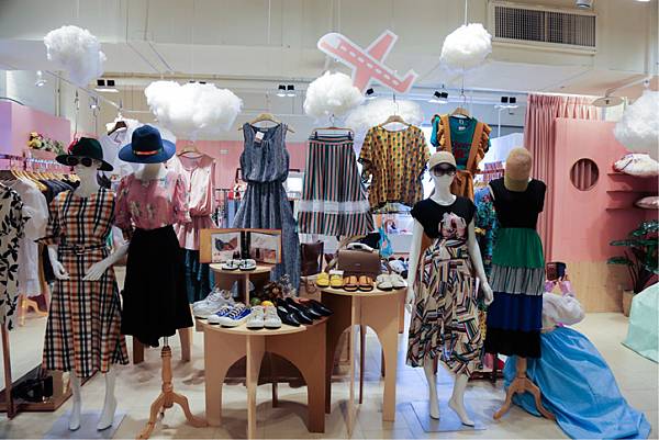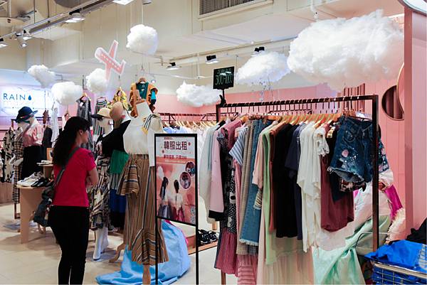 造雨人企業期下多元,有服飾、鞋子、甜點、美甲、攝影,好像都是圍繞歐妮為主。服飾部在二F手扶梯的4點鐘方向。